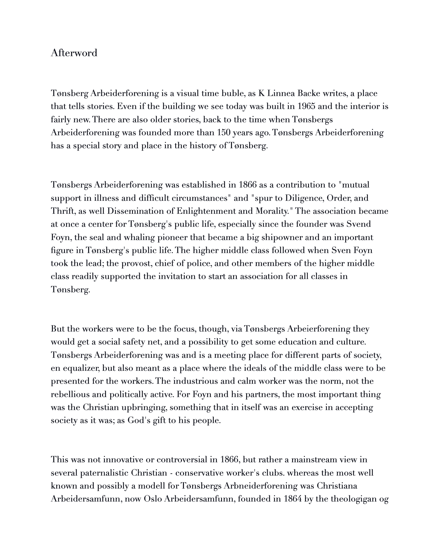 Tønsbergs Arbeiderforening (Tønsberg’s Worker’s Club) - access to club premises only for members.